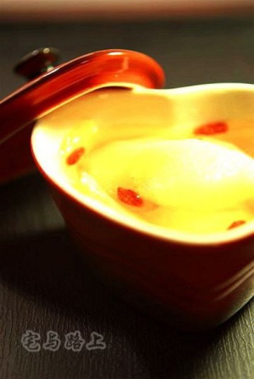 3.把炖盅放到注了水的锅里,盖上锅盖,水烧开后,转中小火炖2.5-3个小时.