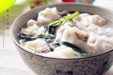馄饨是中国的传统食品,也是常见的小吃,全国各地包括台湾香港,你都可以看到馄饨的身影。只是四川人叫它龙抄手,广东人称它云吞,福建人则把叫它扁食。荠菜鲜肉大馄饨则是上海的特色。它通常个头较大,皮薄馅多,一般只使用鸡或猪大骨熬出的清汤为汤底,除此之外不添加其他任何材料。食用前撒入葱花即可。盛在白瓷海碗里,元宝形状的馄饨圆润雪白,隐约透出荠菜的翠绿,清汤点缀着葱花,猪肉的鲜美,荠菜的清香,丝丝鲜味撩人,尝一口便口齿溢香。材料:荠菜、猪肉、鸡蛋、姜、葱、馄饨皮调料:盐、料酒、糖、鸡精、香油。