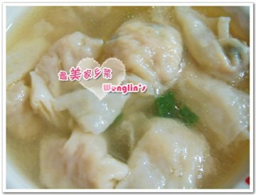 3.然后包入陷捏紧口,只能买到这个最薄的混沌皮了,比正宗的扁肉皮厚一点点,还可以了。呵呵,要是有燕皮就更好了,哈哈。