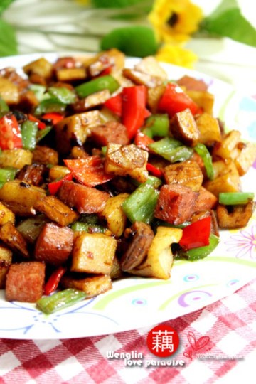 莲藕,火腿,青红椒,豆腐干,老干妈辣酱