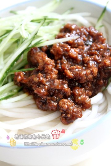 面条,猪肉馅(五花肉),黄酱,甜面酱,葱,醋,糖