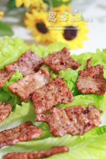 猪扒肉,新鲜生菜,叉烧酱,生抽,鸡精,黑胡椒,辣椒粉