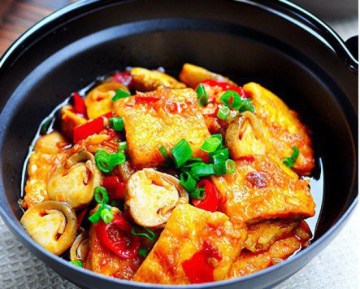 第四种:家常菜菜谱豆腐锅粑豆腐皮煮鸡蛋豆腐做法