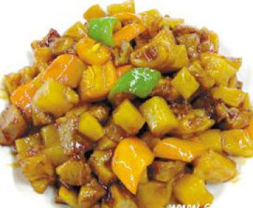相关菜谱名称推荐:酱肉丁,酱肉丁,蚝油青椒牛肉丁,菠萝豌豆肉丁