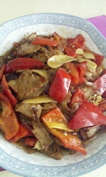 2、热油锅放肉炒,炒到肉要卷的时候,放豆瓣、甜面酱、少许老抽,翻炒香,再加子姜、甜椒炒2分钟放味精和盐即可。