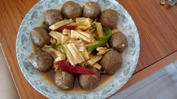 第二种:家常菜菜谱腐竹烧肉丸做法