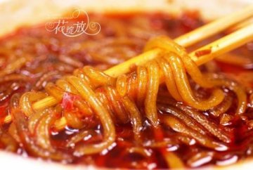 22、用刚制好的或汤料煮粉,下泡软的红薯粉条。