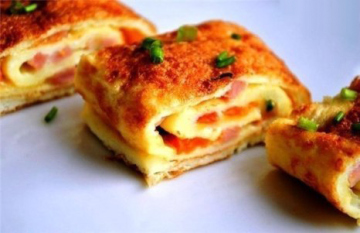 第三种:家常菜菜谱葱香火腿肠肉松蛋卷做法