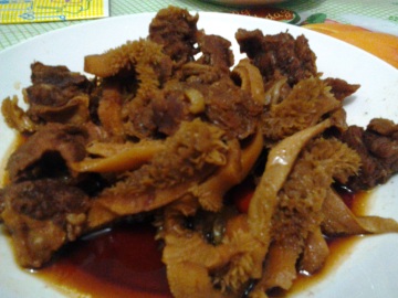 我觉得调料不用太多,几种足够,加点柱侯酱是点睛之笔,我先生竟然连肉带汁和在饭里,饭也吃了一碗,他说,太好味了。谢谢大家参观!