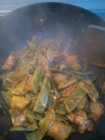 7、中小火炖20分钟,待汤汁浓稠,豆角南瓜变软入味。
