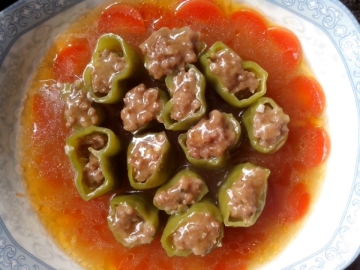 第一种:家常菜菜谱大青椒包肉做法