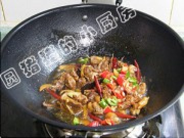 4.放入鸭块,继续编炒.