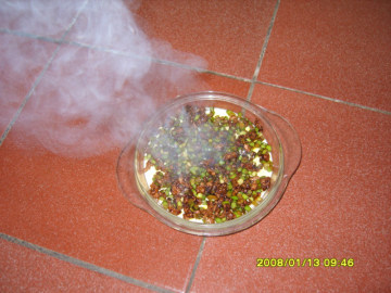 我从来没有蒸好过鸡蛋羹,不是太老就是太嫩。这次能蒸好的关键是事先包了保鲜膜,并刺了洞的缘故吧。看网上大伙都这么介绍,就照着做了。真的是好办法。自己硬着试了多次,不如学习他人的经验来得快呀。