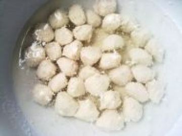6.用手结成圆球状后,利用汤匙将生丸子拨入煮滚的锅中煮熟捞起即可。