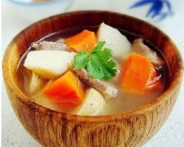 原材料:羊腩300克,胡萝卜100克,山药50克,姜10克,羊骨汤1000克。