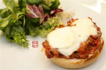 9、将鸡肉盖在面包上,配上新鲜沙拉,乘热享用吧!