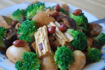 西兰花,豆腐,腐竹,鹌鹑蛋,花生,香菇,辣椒酱,豆豉酱