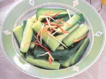主料:小黄瓜600克、红辣椒2根、姜5片