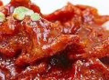 3、之后把炸好的肉倒入番茄酱汁中,溜一下即可出锅。