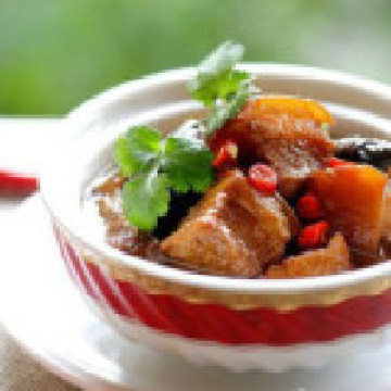 色泽鲜艳,香味醇厚。烧五花肉之前可先把肉炸一会,让肉出点油,吃起来才不会太过油腻。