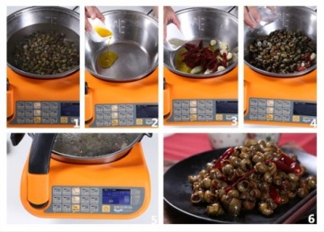 2、再放入田螺煸炒,最后用小火闷煮,使其入味,从而将其麻辣鲜香的特点发挥得淋漓尽致。