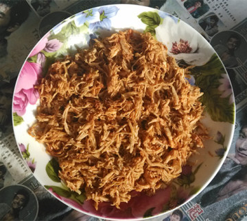 4、撕丝:冷却后的鸡胸擦干水分,撕成鸡丝(这是个功夫活啊……)