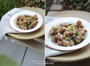 1.排骨洗净,切成一指长的一块,装入碗中;淋上两匙生抽,拌匀了腌一腌(十分钟就可以了);然后在排骨上层洒上一匙黑豆豉,以及一匙剁椒,再均匀地淋上少许清油。