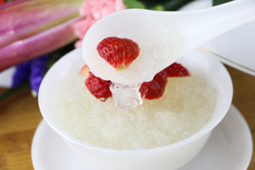3、将炖好的冰糖燕窝晾凉,加上新鲜草莓即可。