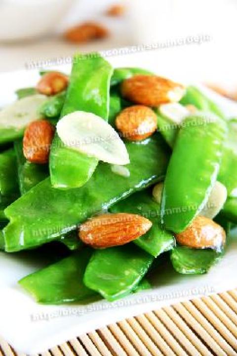 第一种:炒菜菜谱杏仁炒荷兰豆做法