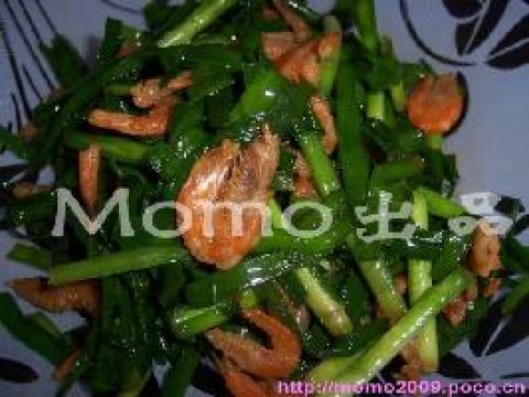 虾米250克,韭菜150克,料酒、精盐、味精等调料各适量。
