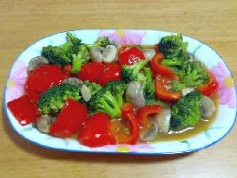 第一种:炒菜菜谱小蘑菇甜椒炒西兰花做法