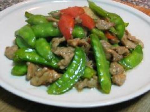 第三种:炒菜菜谱大荚荷兰豆炒肉--用火麻油炒菜做法