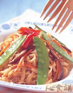 木须炒春捲皮、炒葱油饼、炒乌龙。