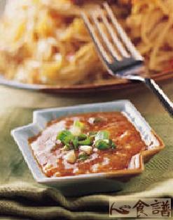 豆腐乳1块,果糖1又1/2大匙,辣油1大匙,水2/3杯,酱油1/2大匙,蒜泥1大匙,葱末1大匙