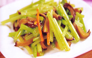 芹菜、香菇洗净,下油锅炒熟,加入适量调味品即可。佐餐食之。