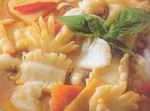 ④余油爆香蒜末、辣椒,放入笋片及调味料烧开,再投入墨鱼及九层塔烩一下,以太白粉水勾成薄汁即成。