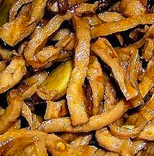 (3).放入烧热的油锅内炸至焦黄捞出沥油,盛盘。