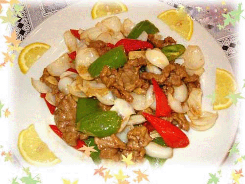 牛肉,鲜百合,青红椒,姜,蒜