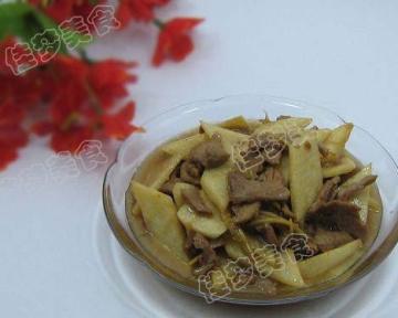 3、炒锅内放油,油温六成热时,把腌好的肉片放入锅内滑开,炒之猪肉变色,放葱、姜丝煸炒,再放山药片翻炒几下,然后,放调好的汁均匀翻炒半分钟即可出锅。