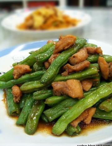 第一种:炒菜菜谱鸡腿肉炒四季豆做法