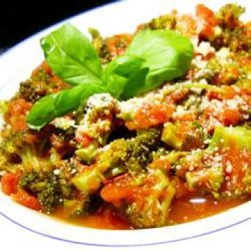 2.将西兰花倒在西红柿酱上面,再放点盐和胡椒调味。再用小火炖10分钟,或直到西兰花变软为止。西兰花不要炒过了,颜色应该保持鲜绿色。倒进盘子里,拌一下使酱汁均匀就可以上桌了。
