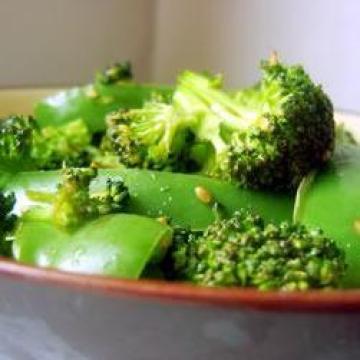 1.用一个大锅以中高火将油烧热。将西兰花和芝麻在一起炒2分钟,再加入青椒继续炒2-3分钟直到青椒变软但脆即可。