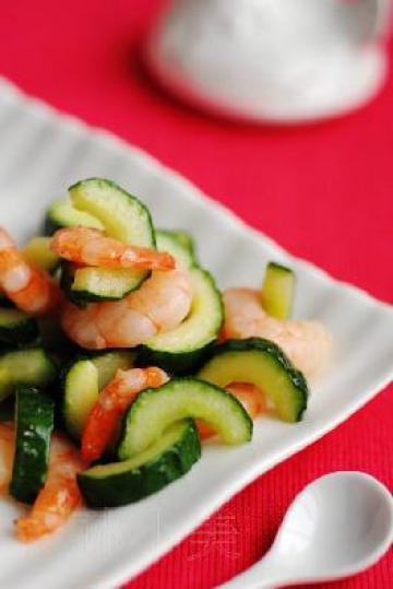 2、黄瓜有清香味,虾仁很新鲜,可以不用葱、姜、蒜、花椒提味。
