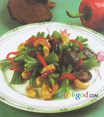 第一种:炒菜菜谱芥蓝腰果炒香菇做法