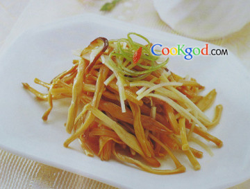 色泽鲜艳,脆嫩成鲜,食之具有金针的独特芳香,为素菜中之佳品。