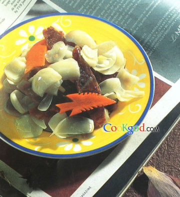 1、鲜百合去皮,洗净,切瓣,下入沸水中焯烫透,捞出沥净水分。
