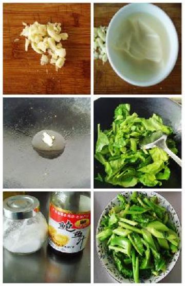 新鲜芥兰,猪油,蒜,盐,鲍汁