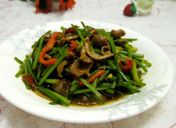 第二种:炒菜菜谱韭菜苔炒鸡胗做法