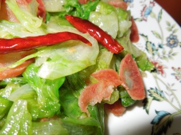 包生菜有一些甜、腊肠也有一些甜,吃起来味道似乎切合。最重要的是,这道菜很简单嘛。