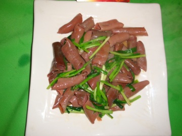 2. 海肠很容易老,所以无论汆还是炒,都必须快,韭菜也是入锅就熟,可以同时下锅同时出锅,调味汁儿最好提前兑好,一起下锅,否则手忙脚乱地怕也误了火候.